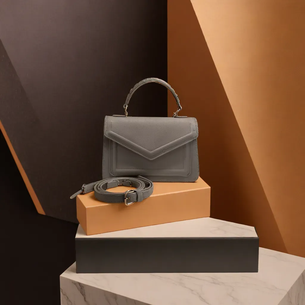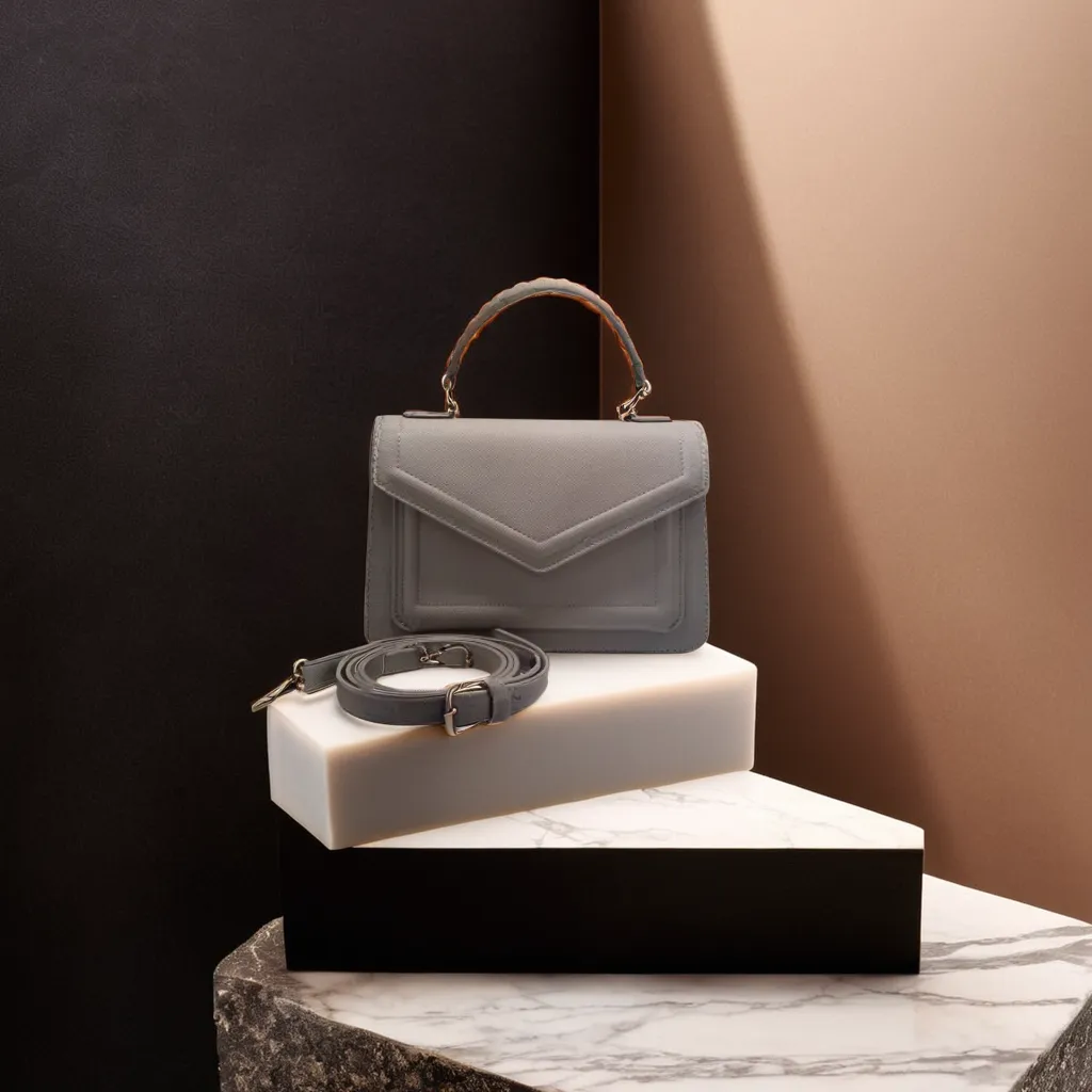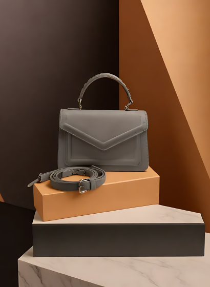 • Prezintă o clapetă stil plic, accentuată de cusături pe margine.