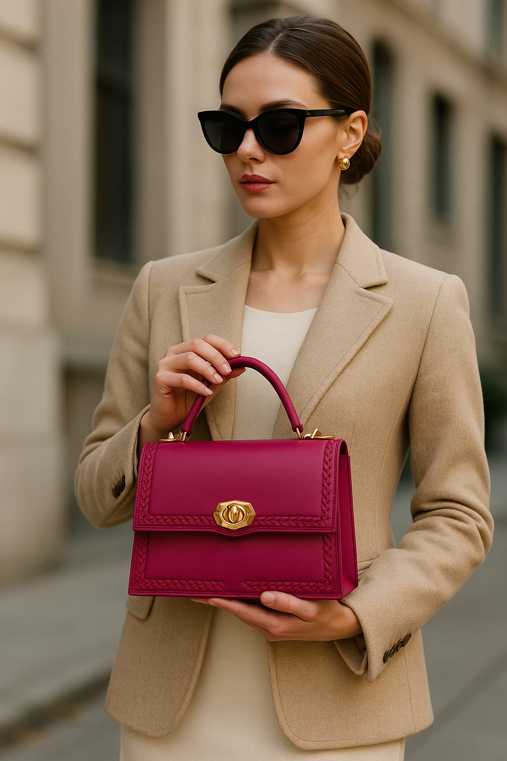 Nuanta intensa de fuchsia transforma aceasta geanta intr-o adevarata declaratie de stil. Designul este structurat, solid si pastreaza forma impecabila in timp. Accentele aurii adauga un aer sofisticat, potrivit atat pentru tinutele de zi, cat si pentru evenimente speciale. Este o alegere ideala pentru femeile care doresc sa iasa in evidenta prin bun gust si originalitate.