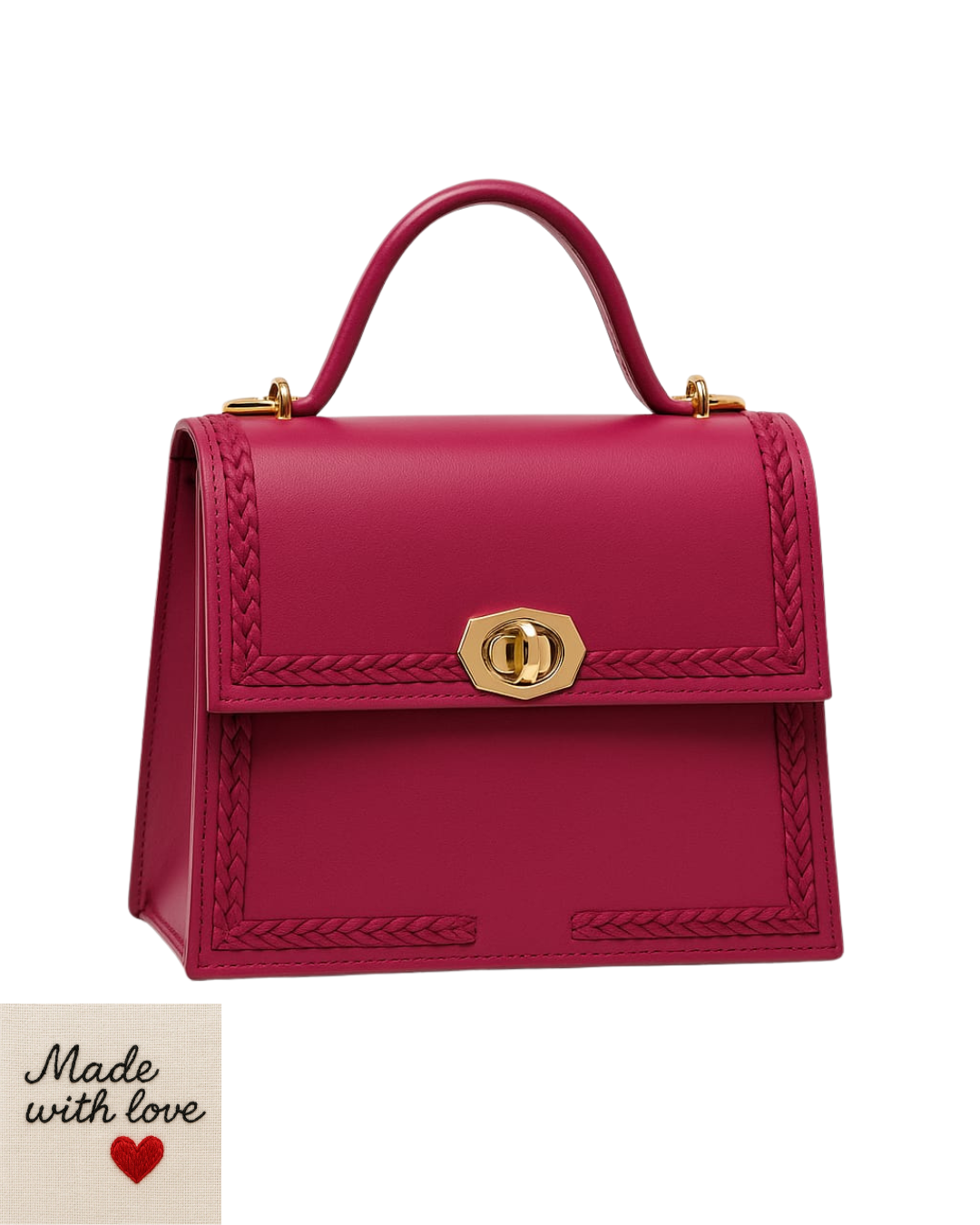 Geanta Ceyda Fuchsia este o creatie premium din piele naturala 100%, cusuta manual, cu design elegant si accente aurii rafinate. Editie limitata semnata Titi Valenti – eleganta autentica, moderna si durabila.  Ideala pentru tinute de zi sau de seara.