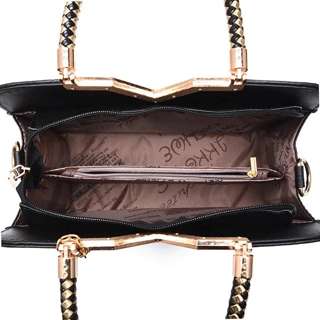 Geanta Dama cu maner gold piele Ecologica Bella este alegerea perfecta pentru femeile care apreciaza stilul rafinat si functionalitatea. Disponibila in doua culori clasice – crem si negru – aceasta geanta se remarca prin designul elegant, manerele impletite cu insertii aurii si detaliile metalice care adauga un plus de sofisticare.