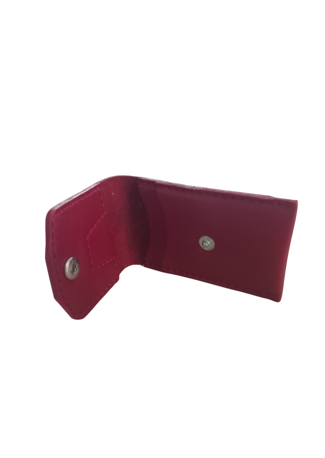 Portcard rosu cu 3 locuri, handmade din piele naturala . Design vertical, subtire si practic, cu inchidere pe capsa si locas interior pentru moneda.