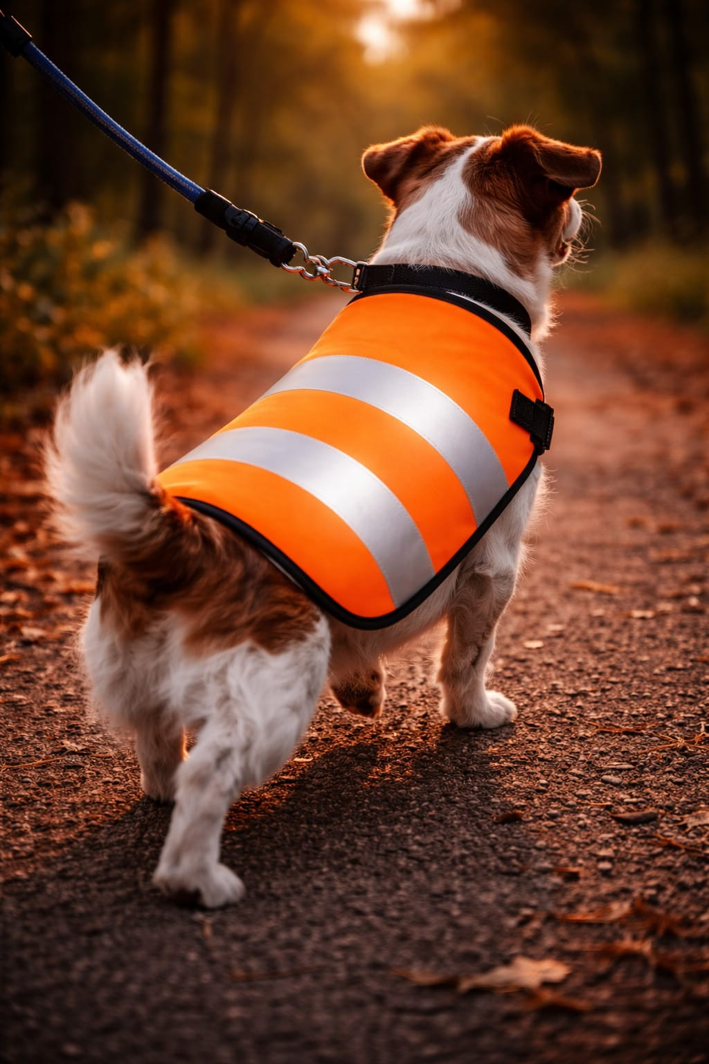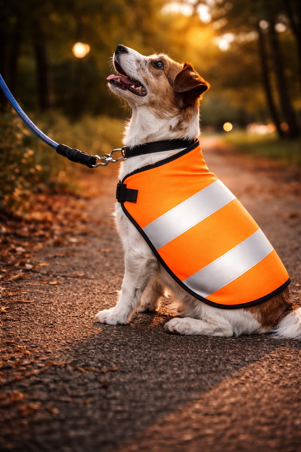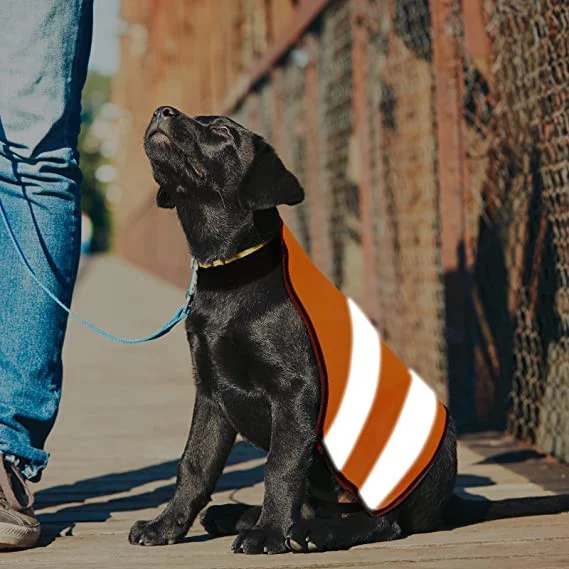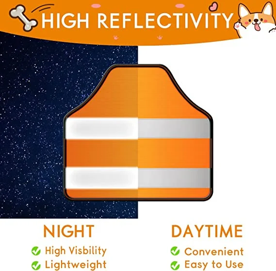 Siguranta este esentiala in timpul plimbarilor nocturne. Datorita combinatiei de portocaliu intens si negru, impreuna cu benzile reflectorizante integrate, vesta permite identificarea usoara a cainelui chiar si de la distanta. Lumina farurilor sau a iluminatului stradal este reflectata eficient, reducand riscul incidentelor.