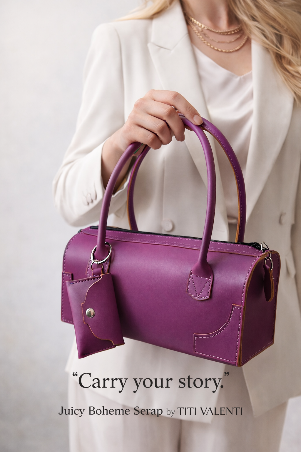 Alege Juicy Boheme Serap – Geanta din piele naturală mov cu portcard pentru un look plin de farmec și o experiență de purtare premium, marca Titi Valenti – create manual cu atenție la detalii și pasiune.